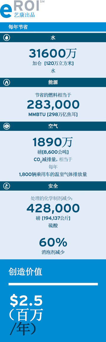 为控制发电厂冷却系统的水质,艺康引入了Purate技术。由于Purate相比之前的解决方案能够更加高效地处理腐蚀和起泡问题,而且也是一种更加有效的消毒剂,因此改善了微生物控制并减少了化学制剂的使用量。借助于Purate及其远程数据监测功能,发电厂将冷却塔的再循环周期增加到高达10个周期,达到出水质量标准,并在干旱月份保持高效运行。Purate还大幅削减了能源消耗量与温室气体排放量。