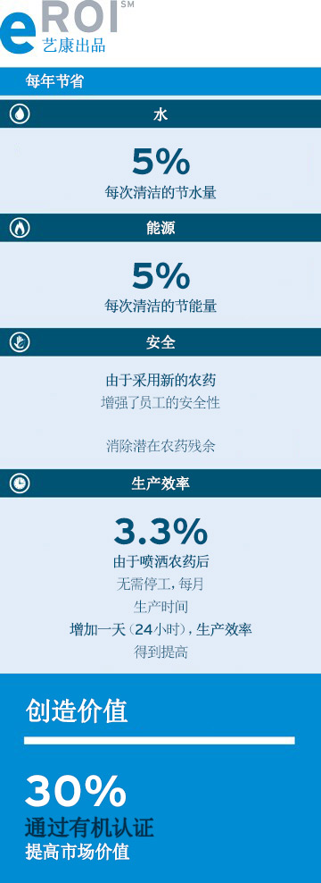 客户的新产品系列获得了有机认证。此外,由于在施用杀虫剂之后无需停产,该公司每月的生产时间增加了一天(24小时),将生产力提高了3.3%。